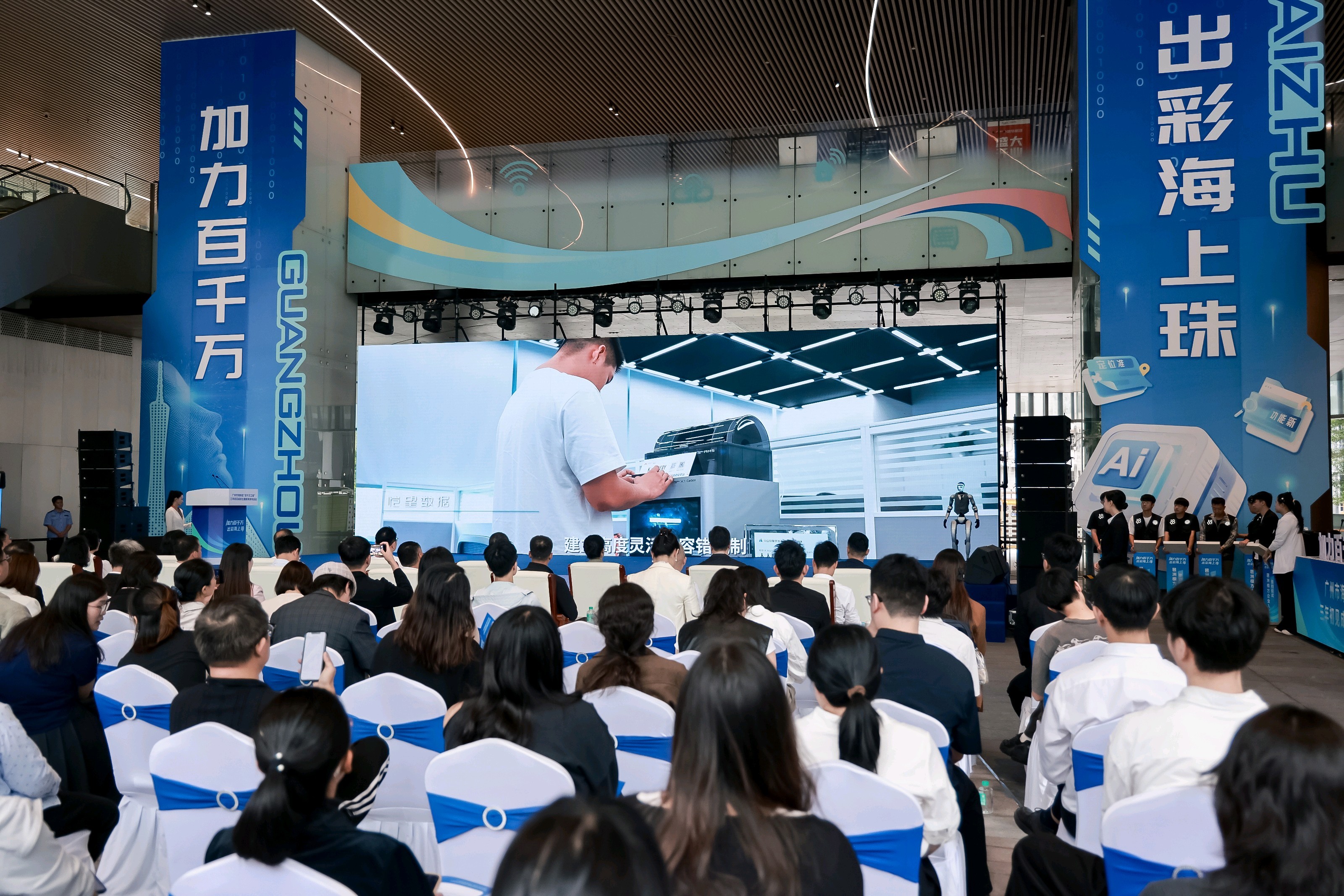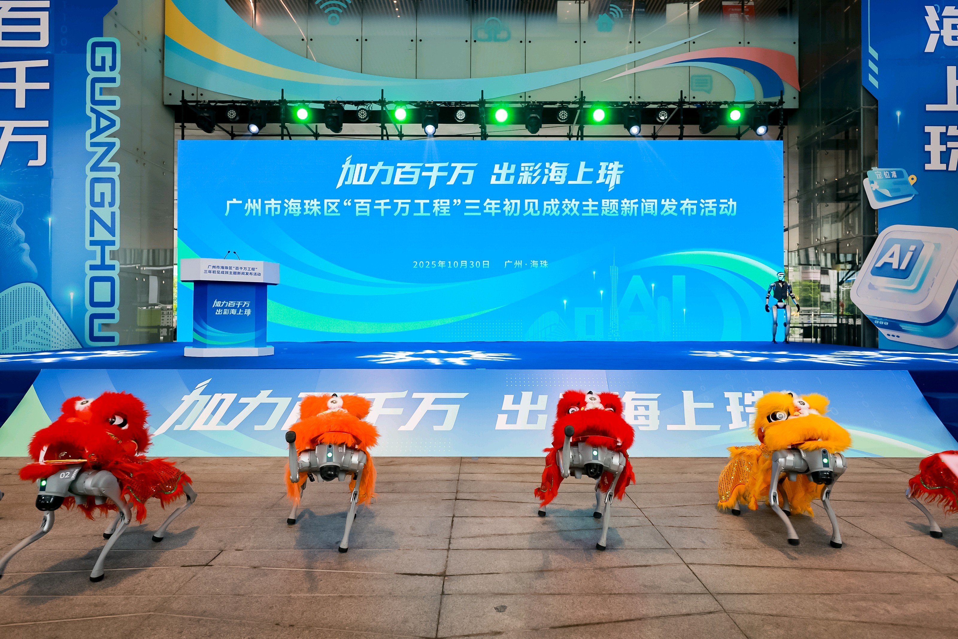 金属的光泽、机械的流畅、AI的智慧,映照出海珠三年来“百千万工程”推进的科技脉动与城市革新力量。